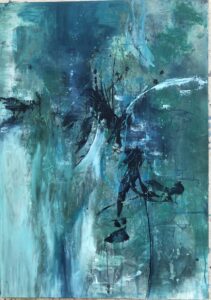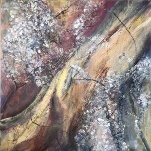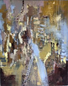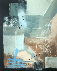 Mes créations prennent place dans un univers contemporain et abstrait, mêlant acrylique, collage, fragments végétaux et minéraux, déployés sur des formats généreux.