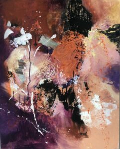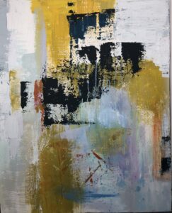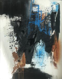 Mes créations prennent place dans un univers contemporain et abstrait, mêlant acrylique, collage, fragments végétaux et minéraux, déployés sur des formats généreux.